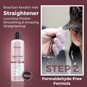 - BRAZILIAN KERATIN HAIR TREATMENT KIT- Elevate your At Home Hair Straightening routine with the Miracle Therapy Kit, which includes a Clarifying Shampoo, Keratin Hair Treatment, and Heat Protectant and pH Balancing Spray. This kit delivers exceptional straightening while nurturing your hair, offering a Formaldehyde-Free keratin treatment that revitalizes your locks without harsh chemicals or unpleasant odors!