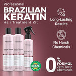 - BRAZILIAN KERATIN HAIR TREATMENT KIT- Elevate your At Home Hair Straightening routine with the Miracle Therapy Kit, which includes a Clarifying Shampoo, Keratin Hair Treatment, and Heat Protectant and pH Balancing Spray. This kit delivers exceptional straightening while nurturing your hair, offering a Formaldehyde-Free keratin treatment that revitalizes your locks without harsh chemicals or unpleasant odors!